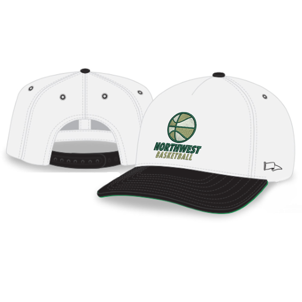 NW Basketball Rah-Rah 5-Panel Chino Twill Snapack Cap-White/Black/Green underbill