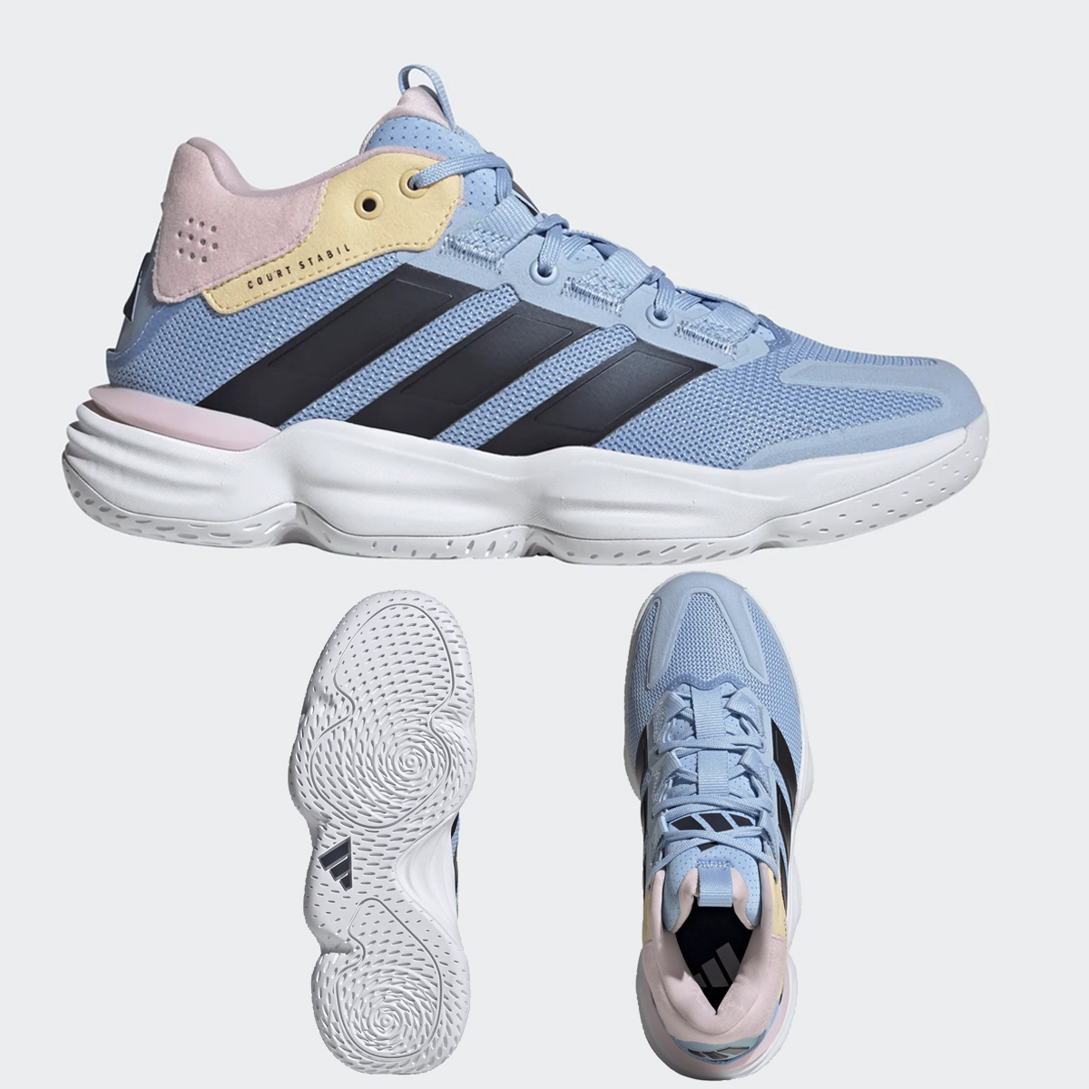 Command the court. Rolling with basketball-inspired style, these shoes are part of the trusted adidas Stabil family of power-focused indoor footwear. Their mid-cut mesh upper offers support and ventilation, while a REPETITOR midsole adds stability and comfort to every stride. A durable rubber outsole provides game-changing grip as you take control.