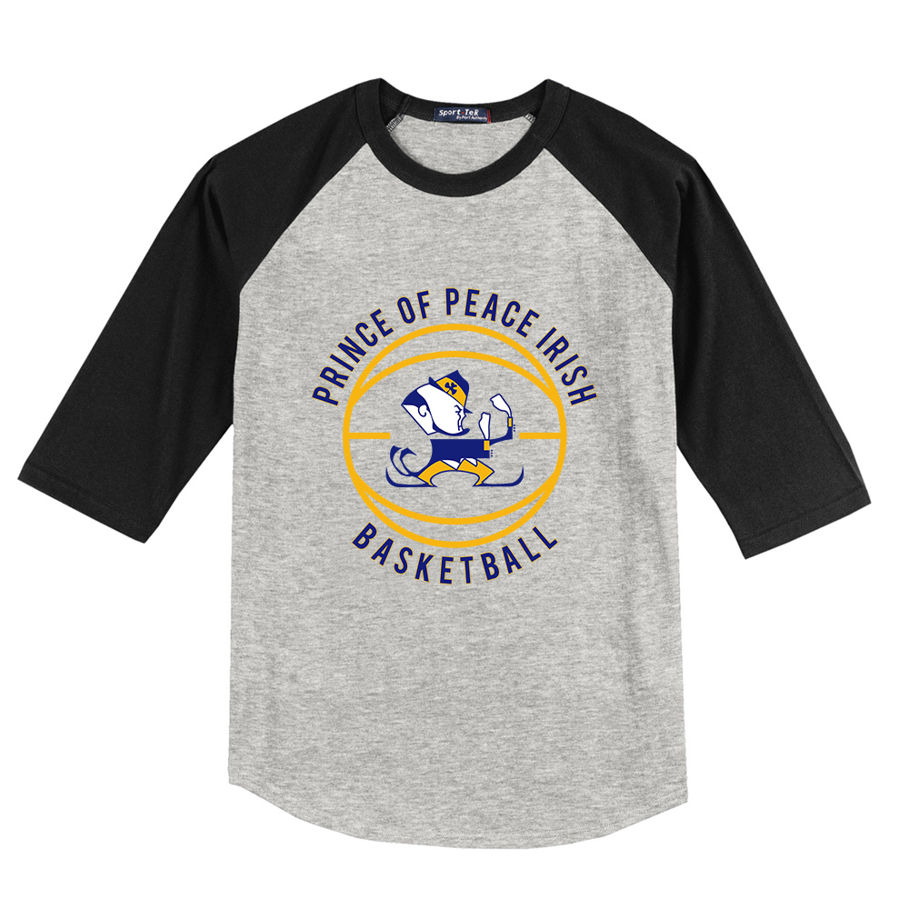 Prince of Peace Sport-Tek 3/4 Adult Sleeve Baseball shirt-Heather Grey/Black