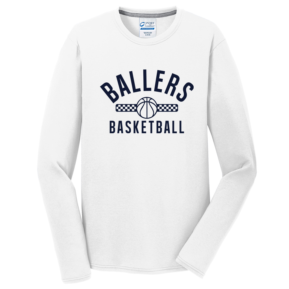 PV Ballers BB Men Long Sleeve Essential Blended Performance Tee-White