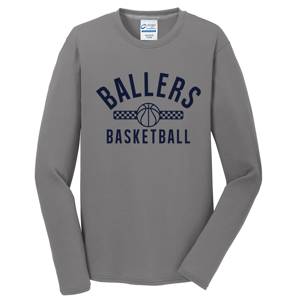 PV Ballers BB Men Long Sleeve Essential Blended Performance Tee-Medium grey