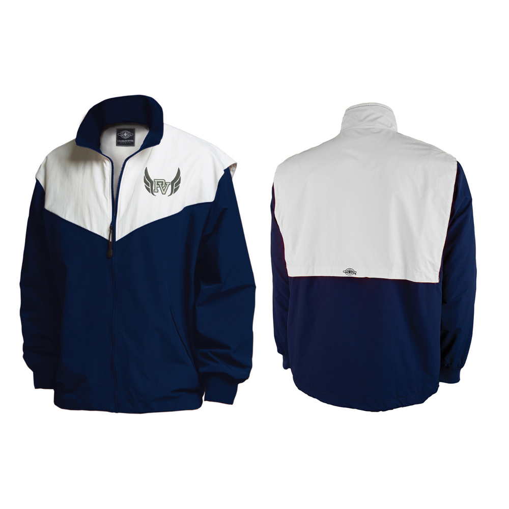 Dyed-to-match rib knit cuff and inside collar facing
