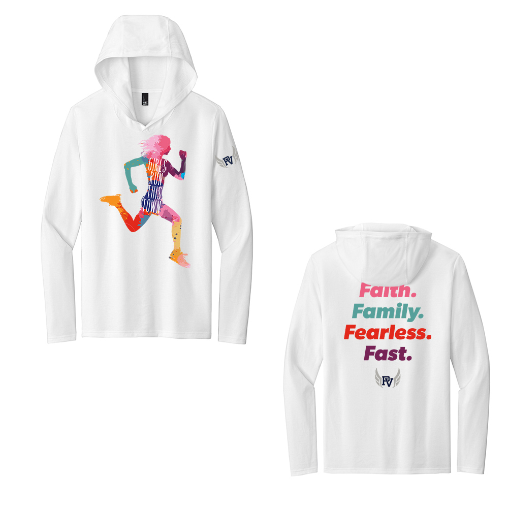 PV Girls Track Field District Made Mens Perfect Tri Long Sleeve Hoodie-White