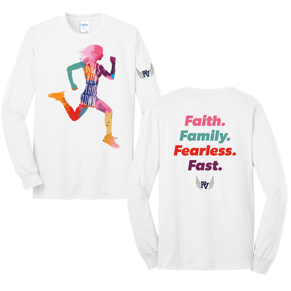 PV Girls Track Field Unisex Cotton Long Sleeve Tee-White