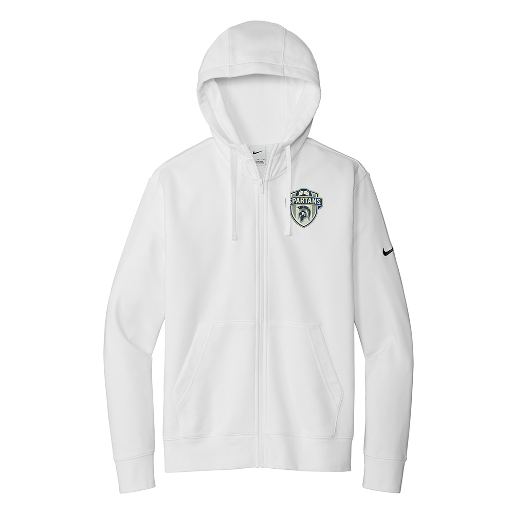 This brushed-back fleece hoodie is where comfort meets street-ready Nike style. Jersey-lined, three-panel hood with dyed-to-match drawcords and front pockets. Rib knit cuffs and hem. A contrast Swoosh logo is embroidered on left sleeve. Made of 8.2-ounce, 72/20/8 cotton/polyester/organic cotton.
