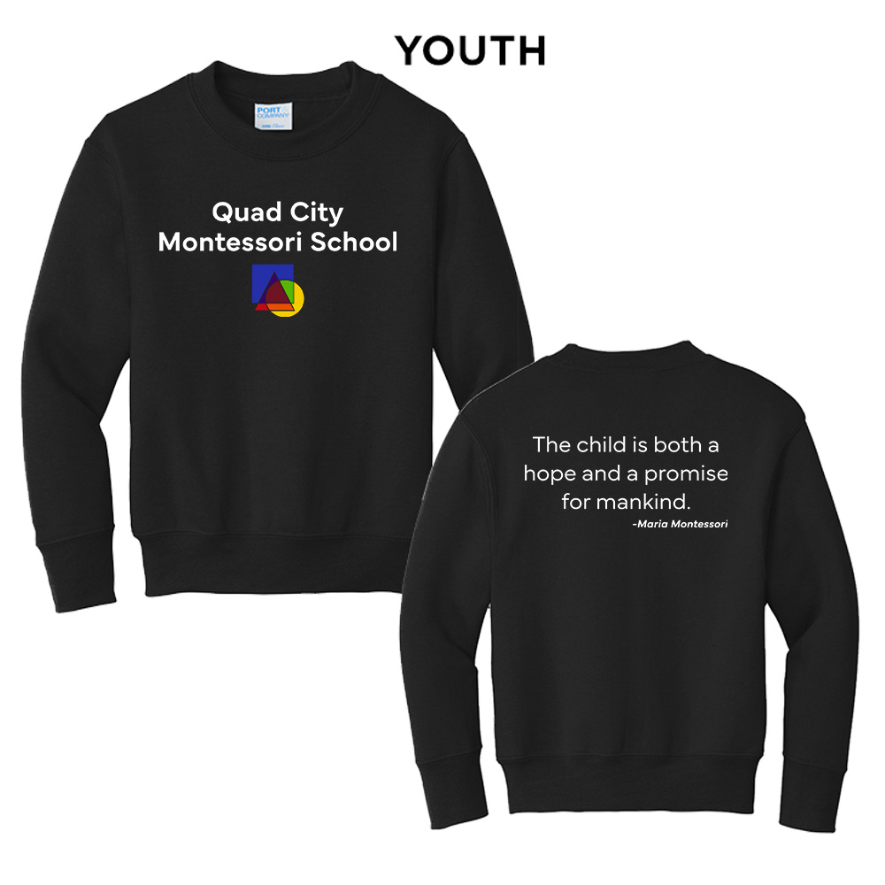 QC Montessori School Youth Fleece Crewneck Sweatshirt-Black