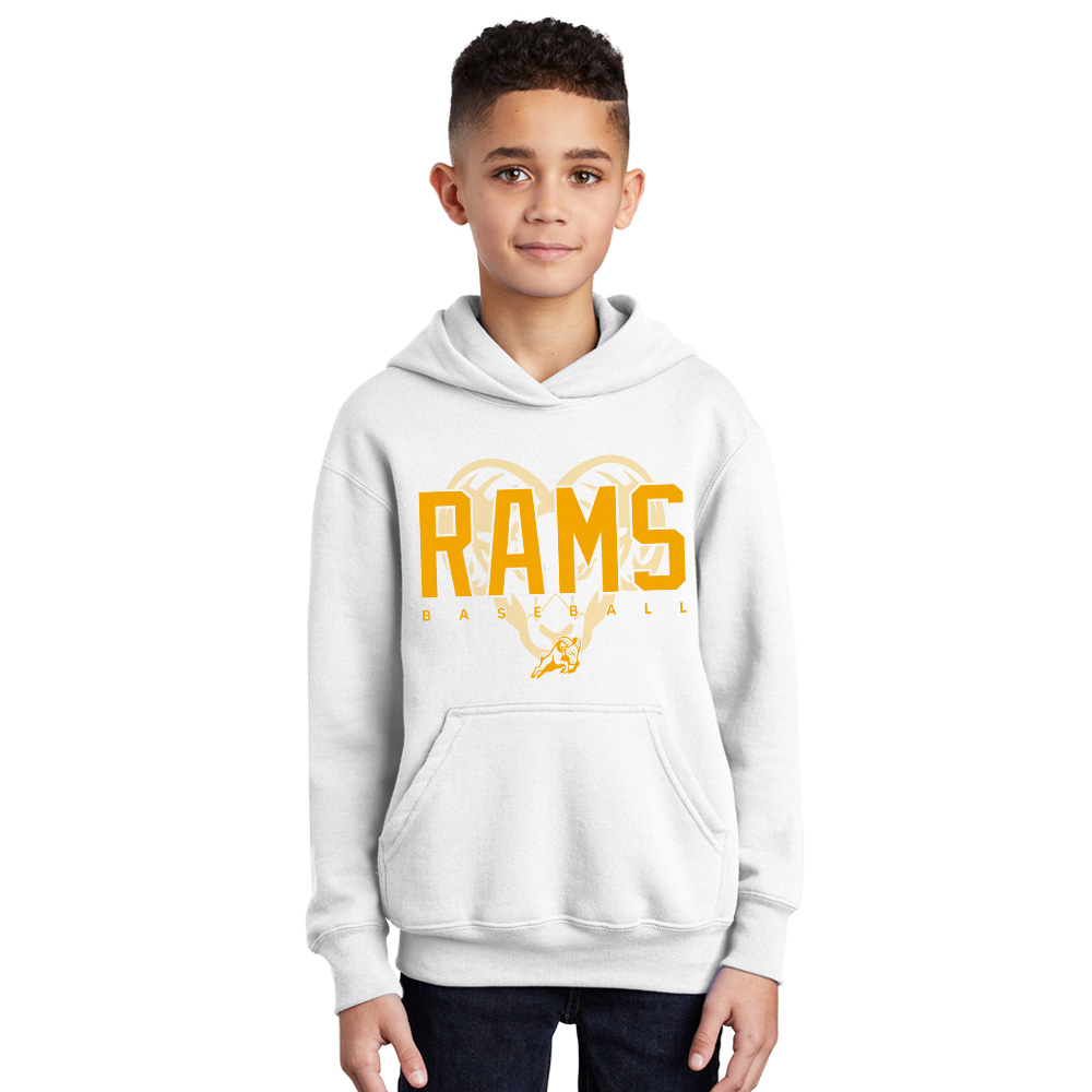 QCA Rams BB Youth Fleece Hooded Sweatshirt-White
