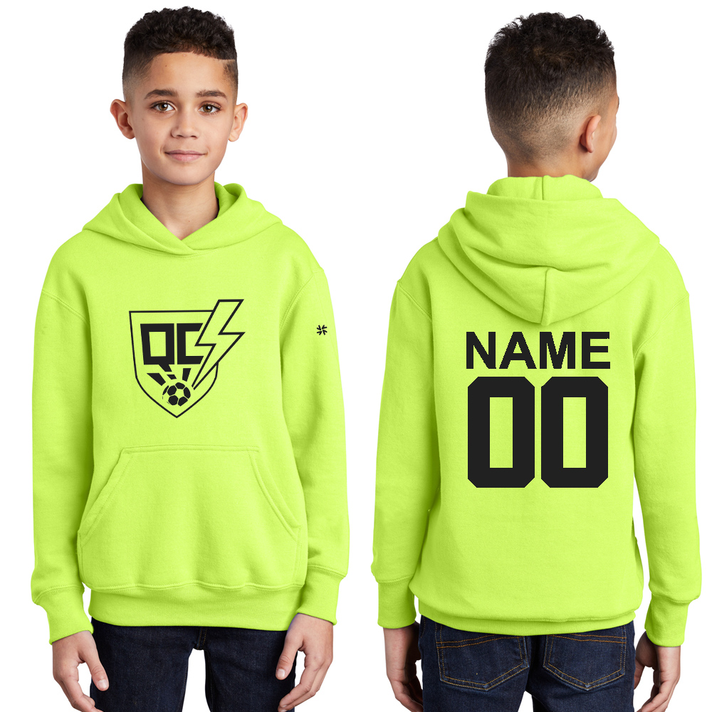 QC Strikers Soccer Youth Fleece Hooded Sweatshirt-Neon Yellow