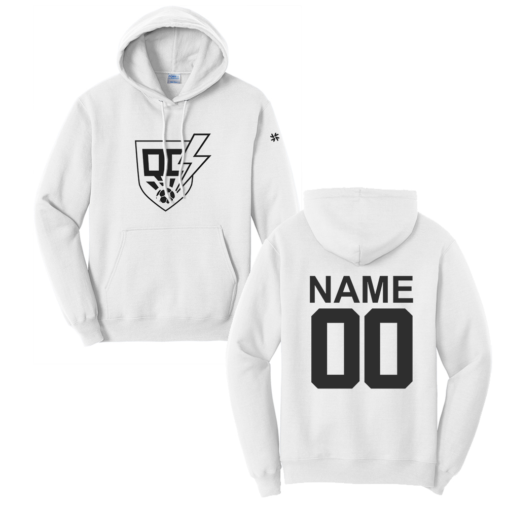 QC Strikers Soccer Unisex Fleece Hooded Sweatshirt-White