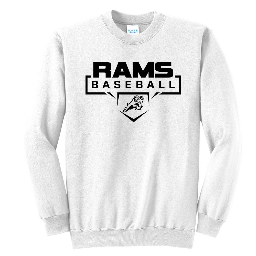QCA Rams Baseball Unisex Fleece Crewneck Sweatshirt-White