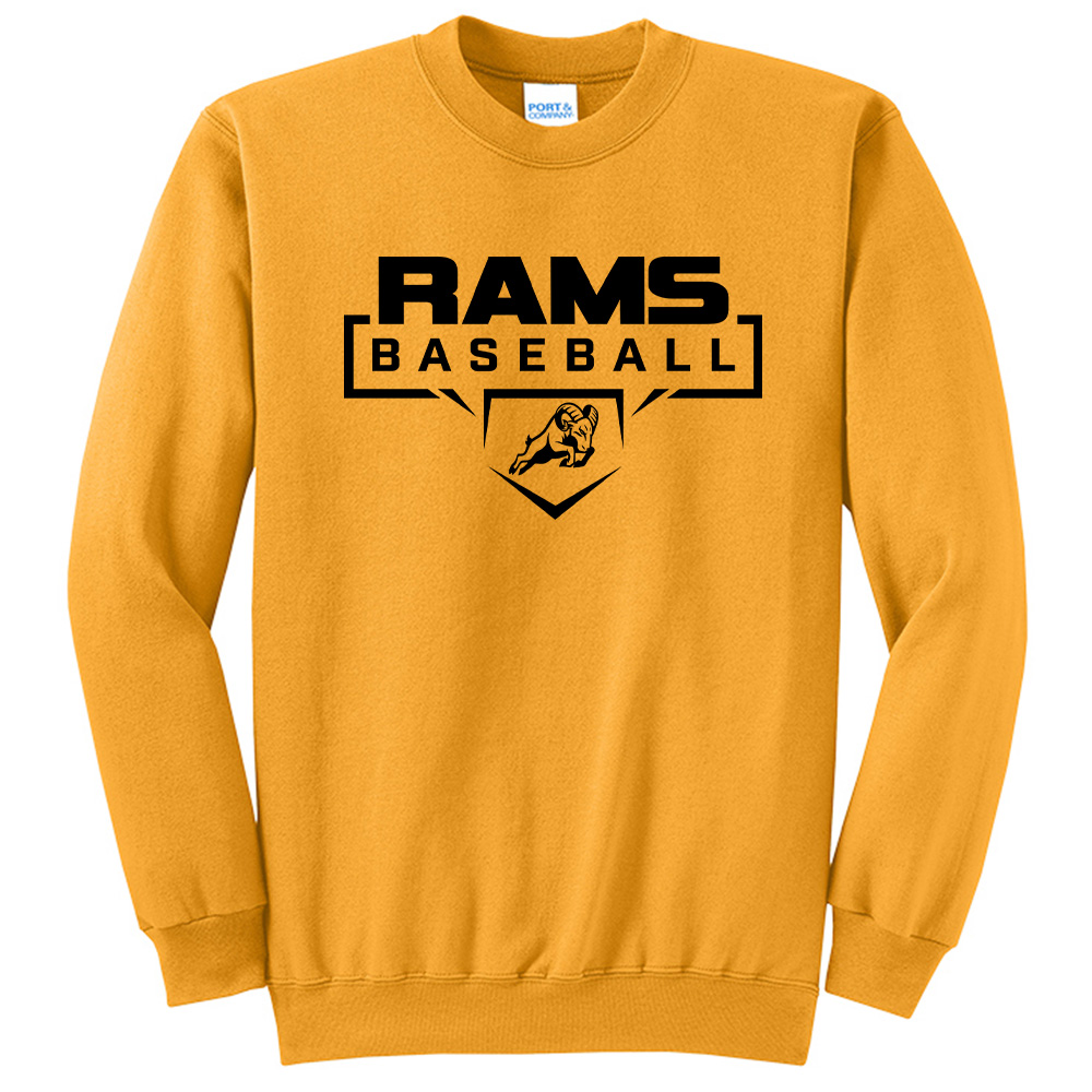 QCA Rams Baseball Unisex Fleece Crewneck Sweatshirt-Gold