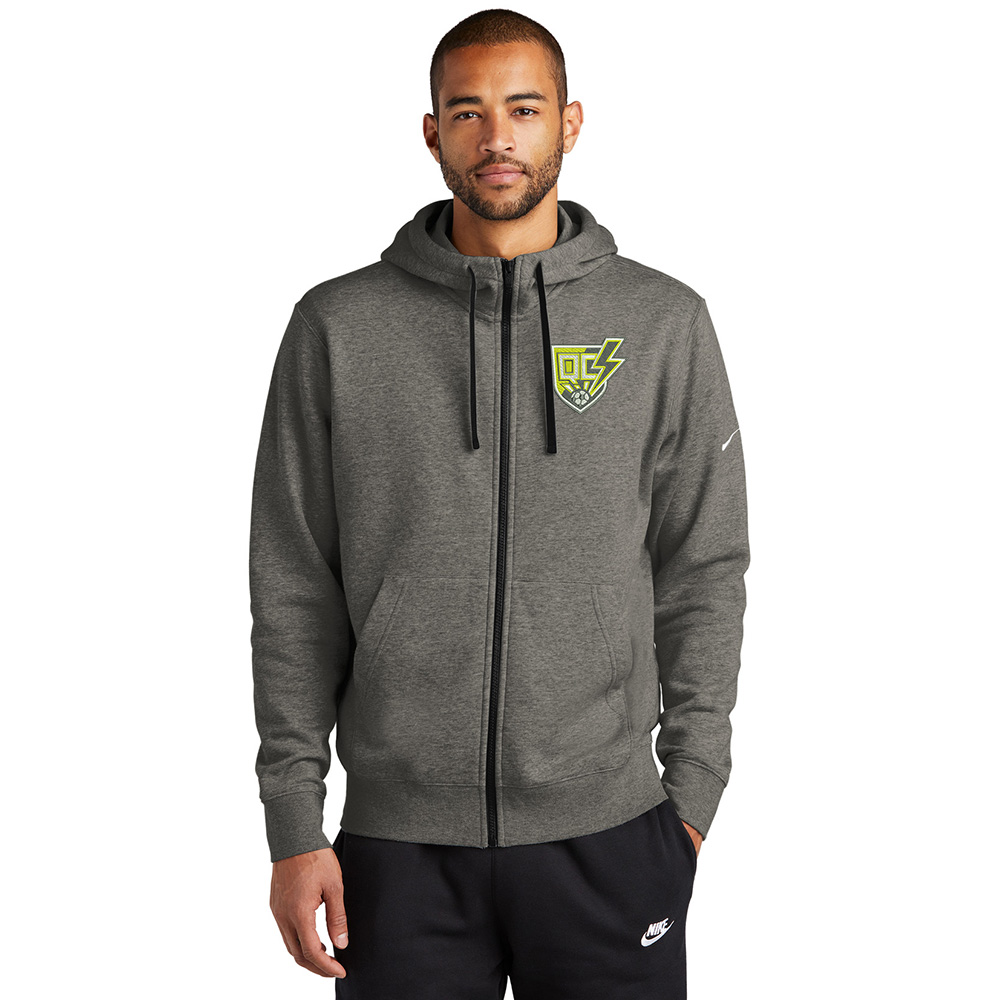 QC Strikers Nike Club Fleece Sleeve Swoosh Full-Zip Hoodie Men-Charcoal Heather
