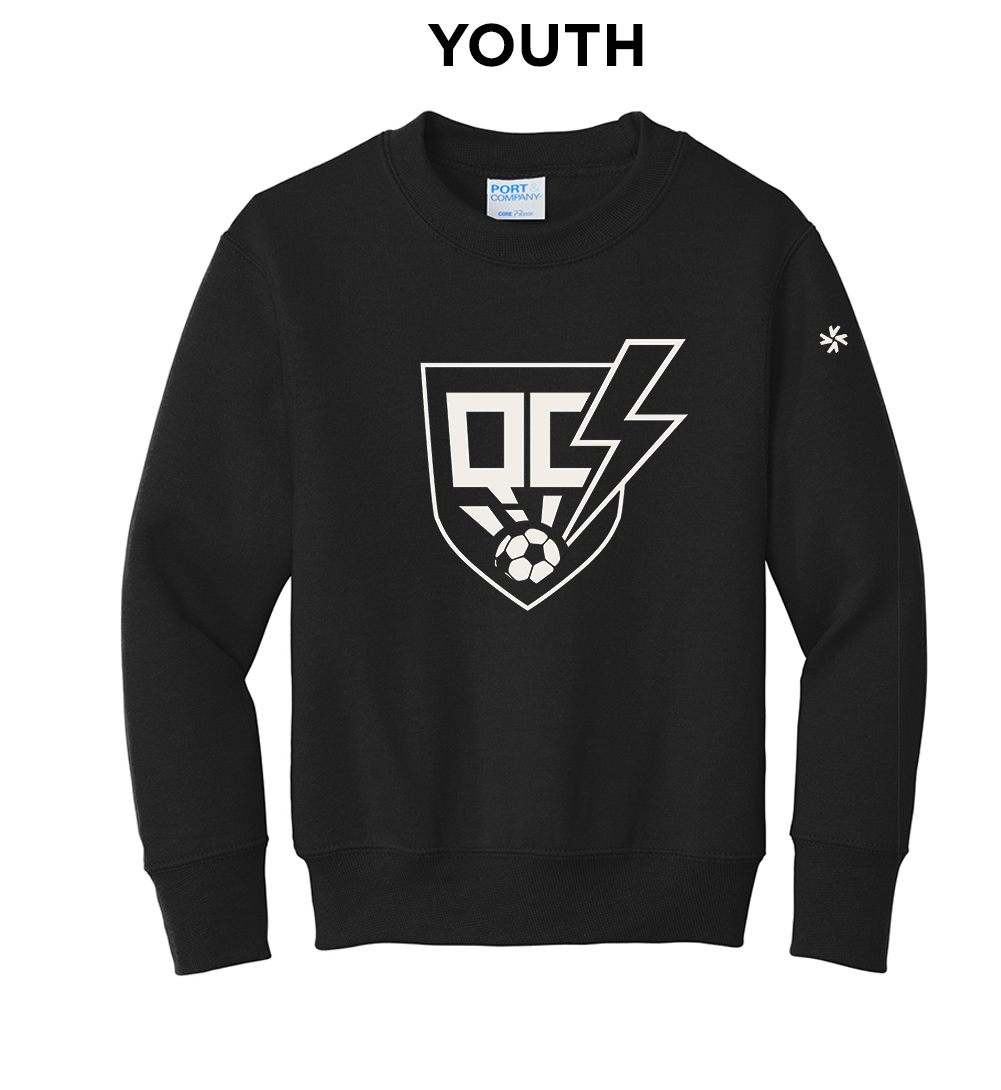 QC Strikers Youth Fleece Crewneck Sweatshirt-Black
