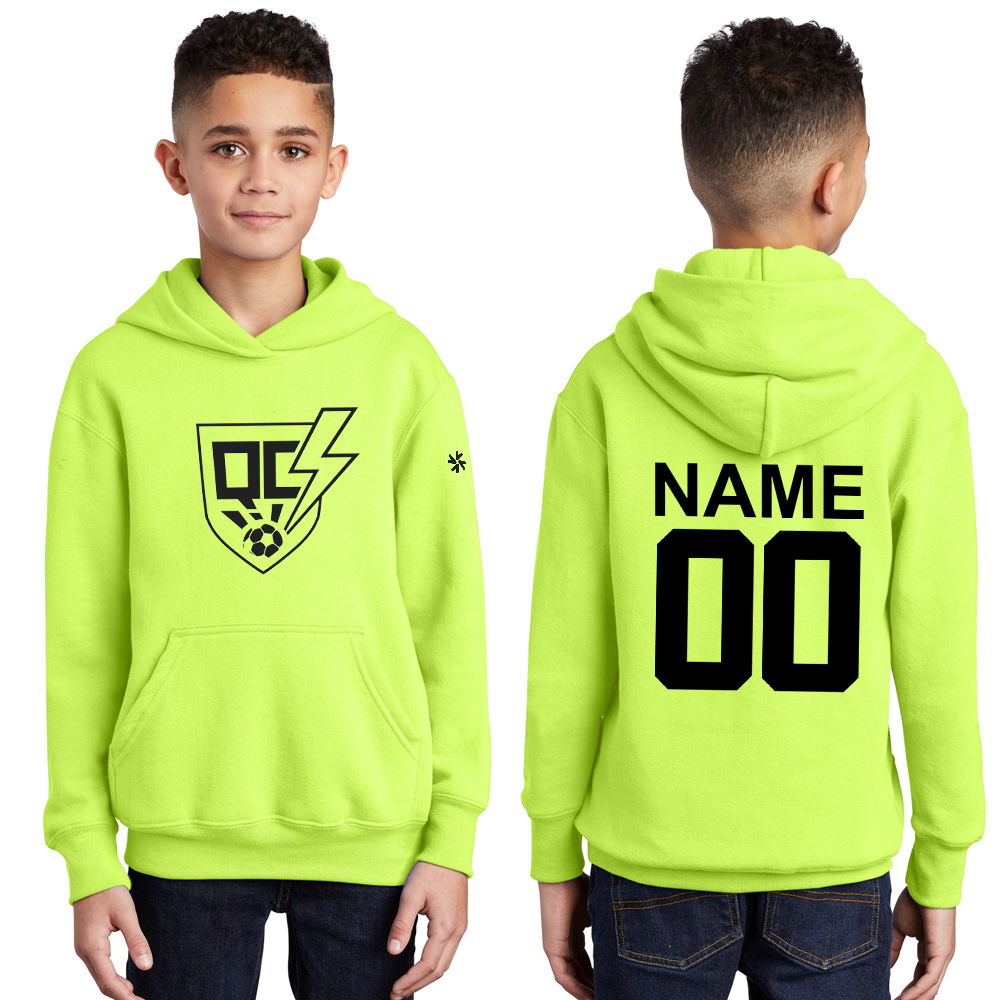 QC Strikers Youth Fleece Hooded Sweatshirt-Neon Yellow