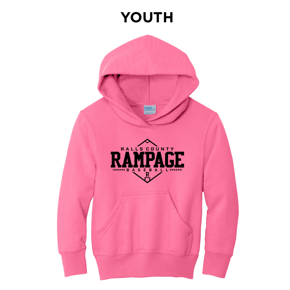 Rampage Baseball Youth Fleece Hooded Sweatshirt-Neon Pink
