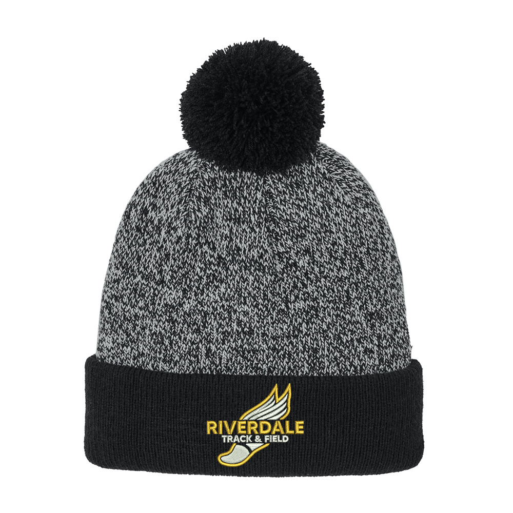 Riverdale Track Field Sport-Tek Halftime Heather Pom Beanie-Black/Silver