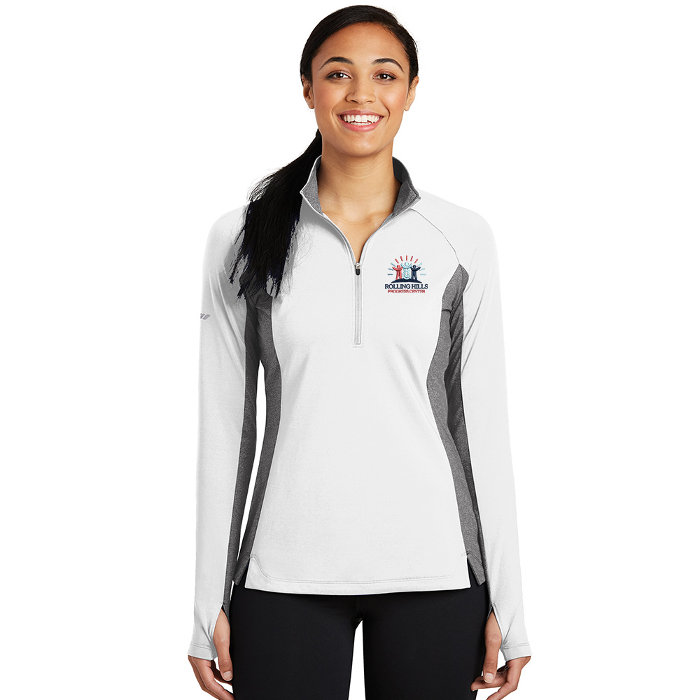 Rolling Hills Sport-Tek Sport LADIES wick stretch 1/4 zip pullover w/heather-White/ Charcoal Grey Heather