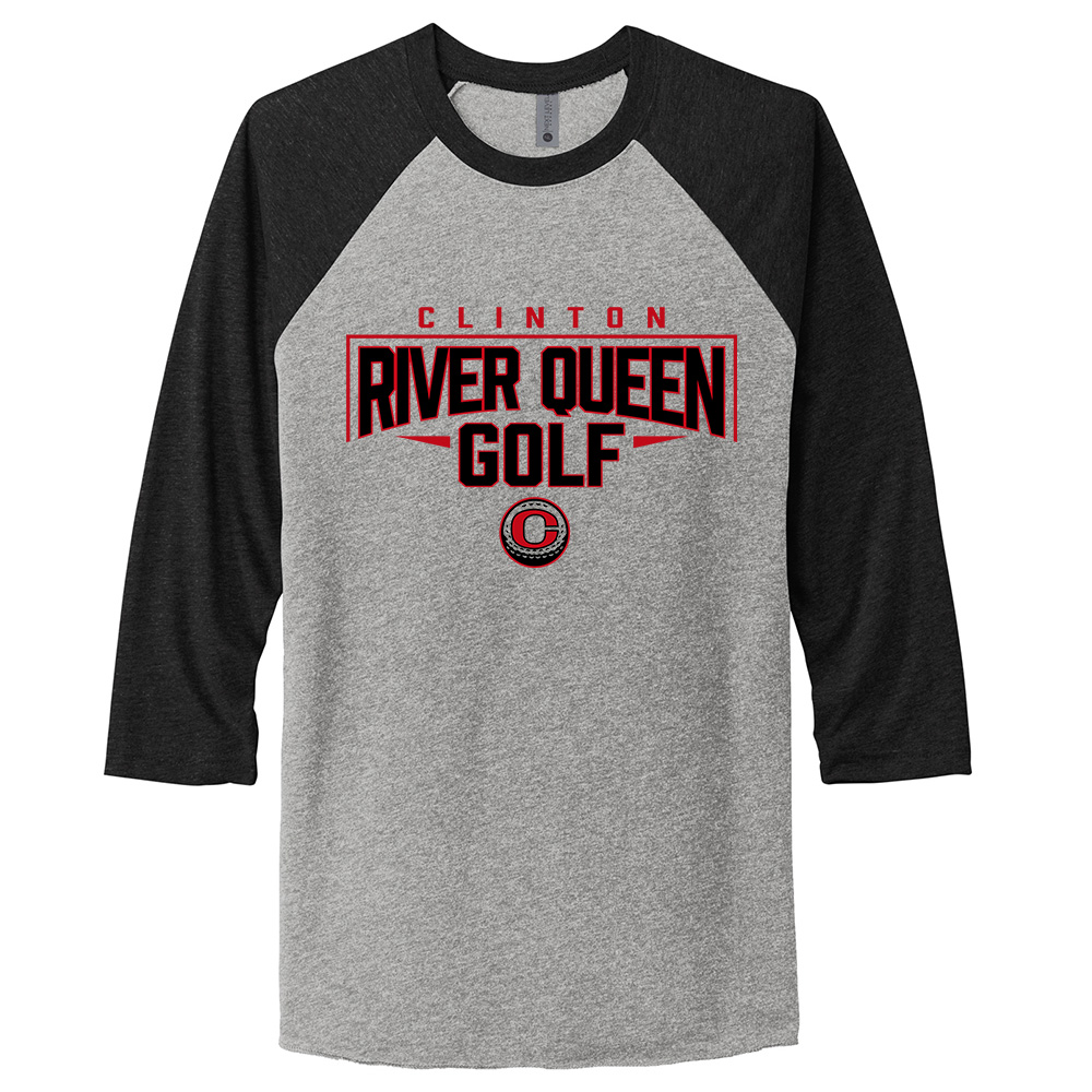 River Queen Golf Next Level Unisex Triblend 3/4 Sleeve Raglan Tee-Black/Heather