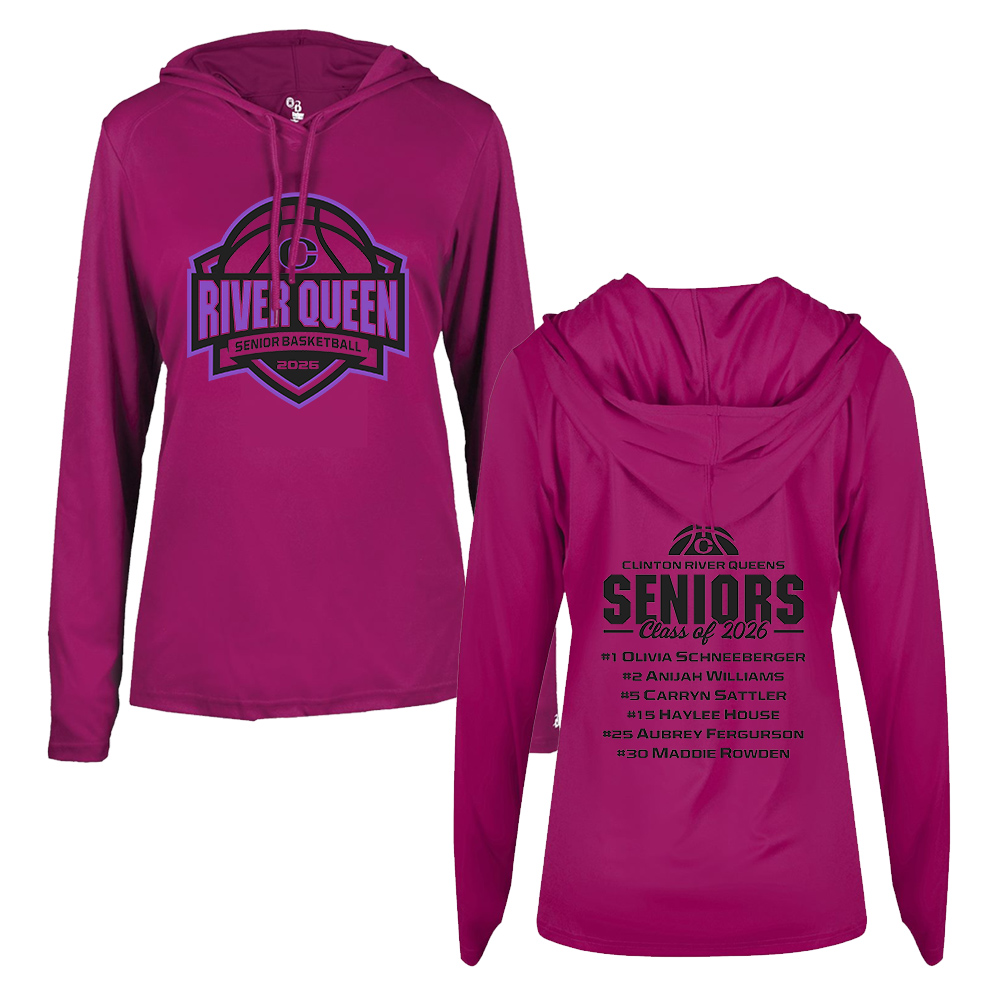 River Queen Senior BB Badger B-Core Long Sleve Women’s Hooded performance Tee-Hot Pink