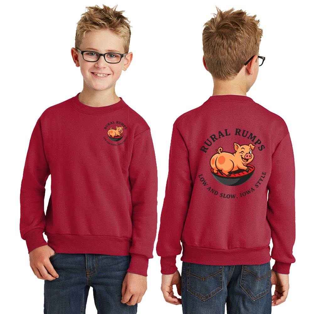 Rural Rumps Youth Fleece Crewneck Sweatshirt-Red