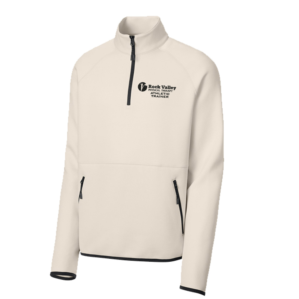 Constructed with a midweight spacer knit fabrication, this modern 1/4-zip can be worn after training, while traveling or as a corporate layer.