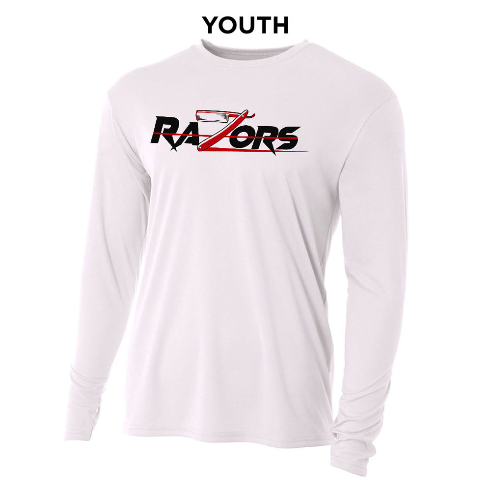 Razors Football Youth Cooling Performance long sleeve Crew Tee-White