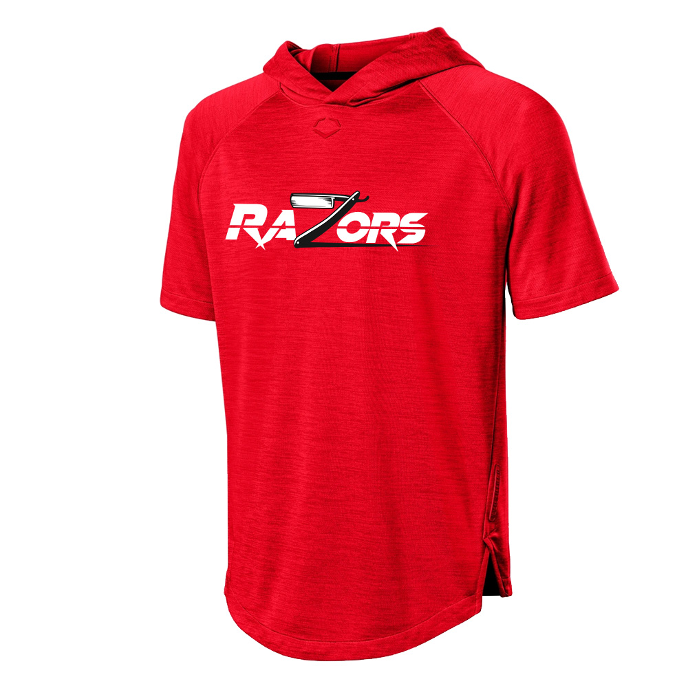 Razors Football Evoshield Adult Lightweight Short Sleeve Baseball Training hoodie 2.0- SCARLET Heather