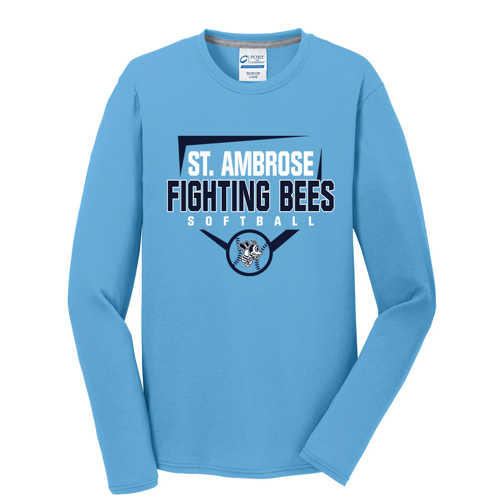 St Ambrose Softball Men Long Sleeve Essential Blended Performance Tee-Aquatic Blue