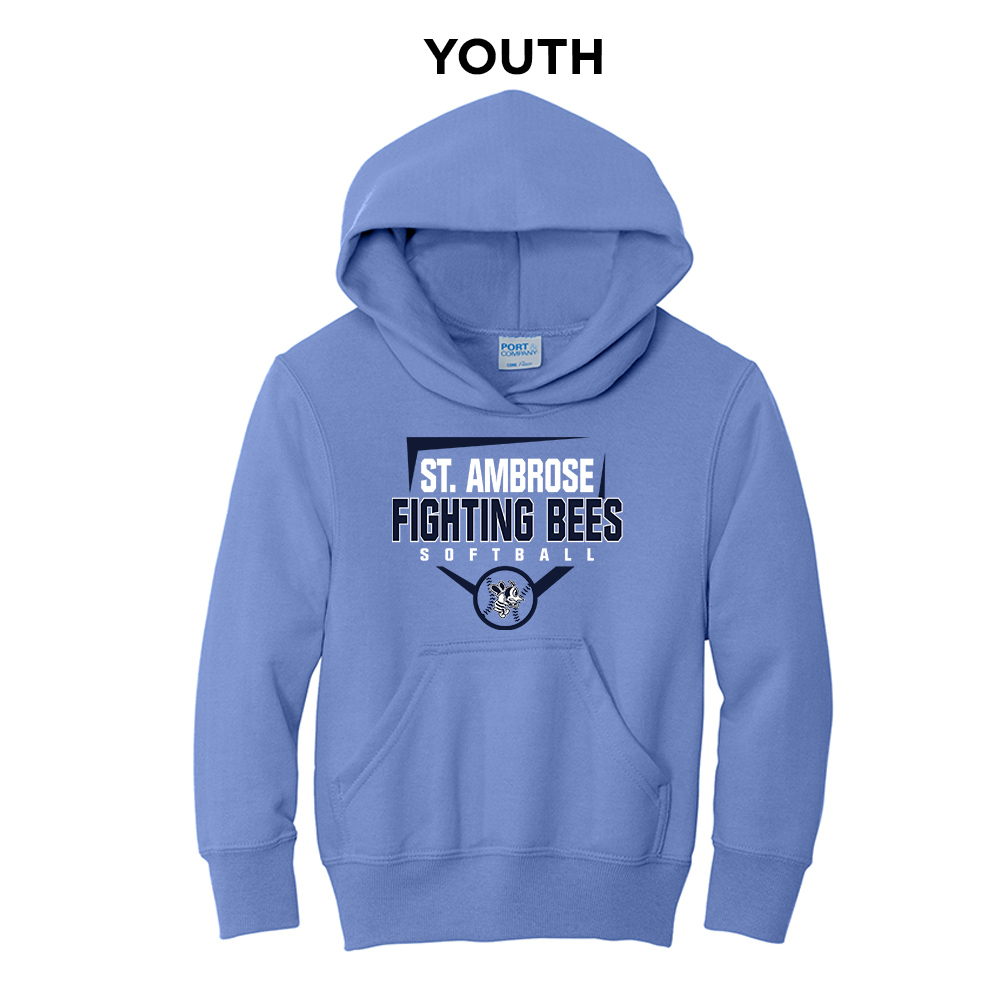 St Ambrose Softball Youth Fleece Hooded Sweatshirt-Carolina