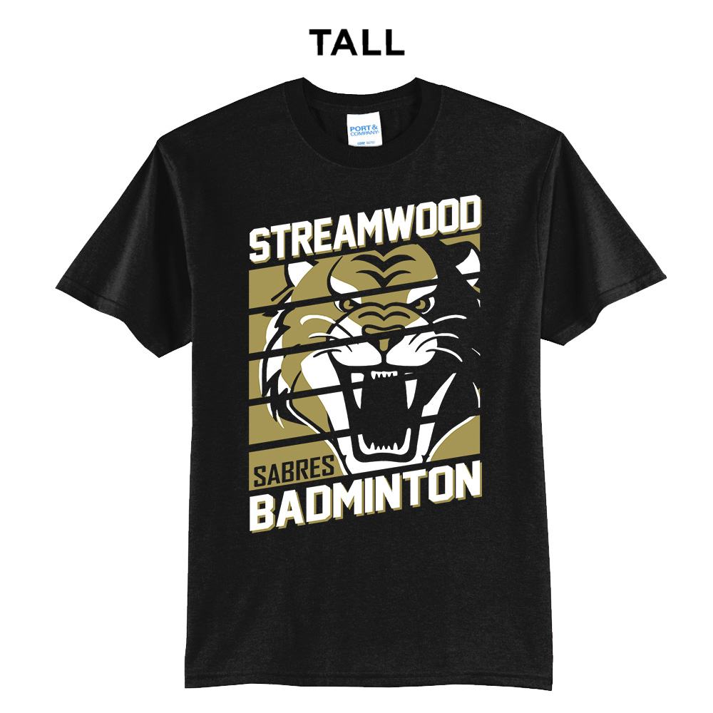 Streamwood Badminton Tall Short Sleeve Tee- Black
