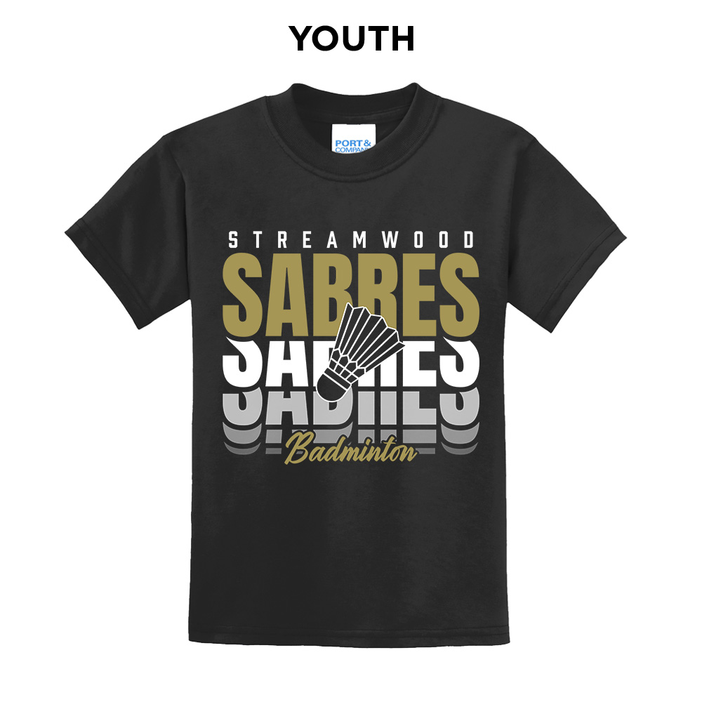 Streamwood Badminton Youth Short Sleeve Tee-Black