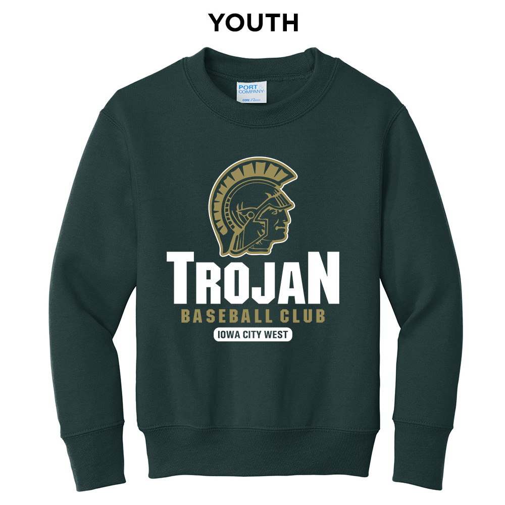 Trojan Baseball Club Youth Fleece Crewneck Sweatshirt-Dark Green