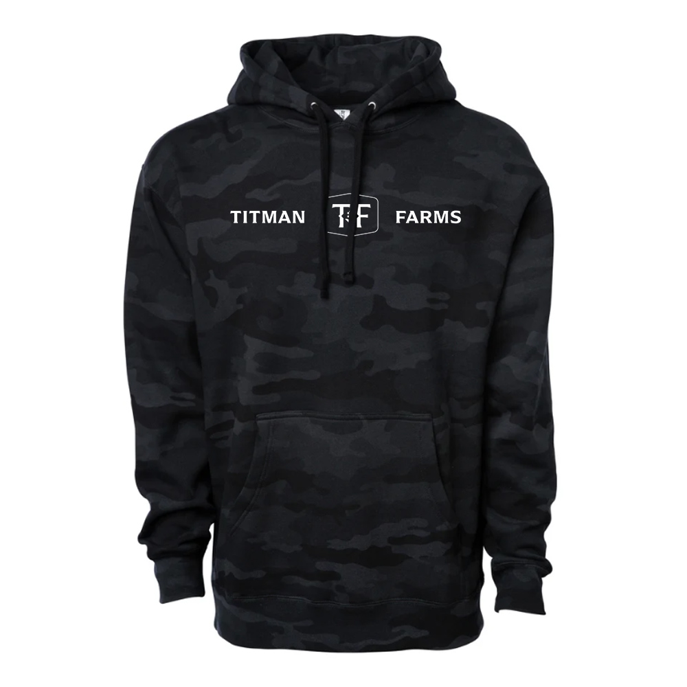Titman Farms Independent Trading Co.Camo Pattern Hooded Pullover Sweatshirt Unisex-Black Camo