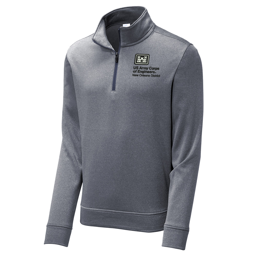 US Army Engineers New Orleans Sport-Tek Men PosiCharge Sport-Wick Heather Fleece 1/4 Zip Pullover-True Navy heather