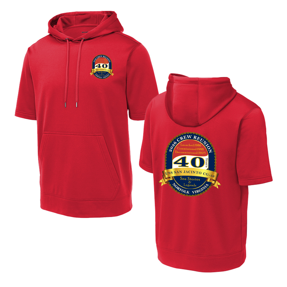 USS San Jacinto Sport-Tek Sport-Wick Fleece Short Sleeve Hooded Pullover-Deep Red