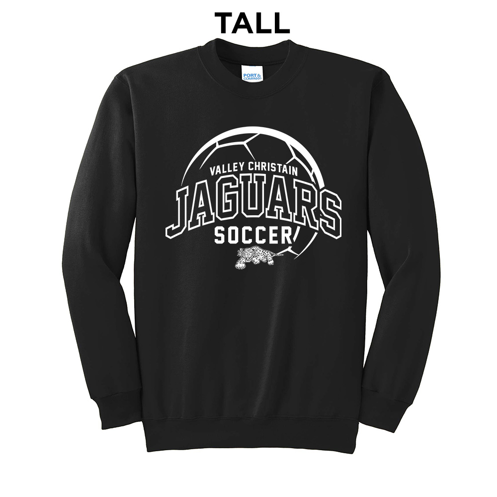Valley Christian Jaguars Tall Fleece Crewneck Sweatshirt-Black