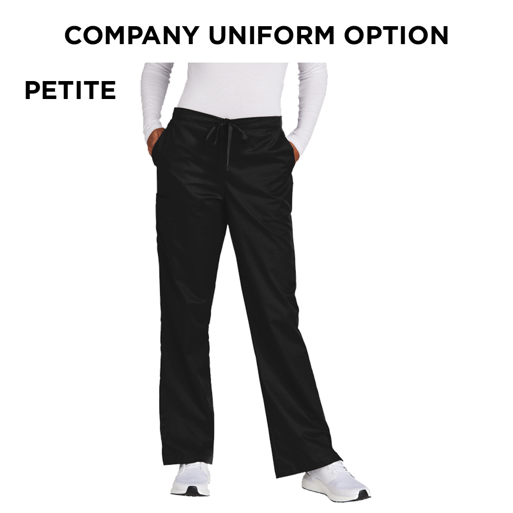 Flat front full drawstring and half-back elastic waistband