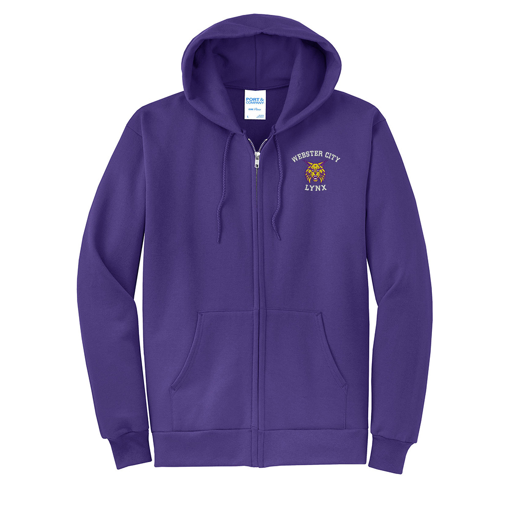 Webster City Lynx Unisex Core Fleece Full Zip Hooded Sweatshirt-Purple