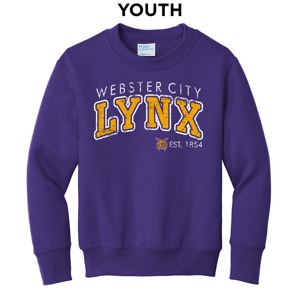 Webster City Lynx Youth Fleece Crewneck Sweatshirt-Purple